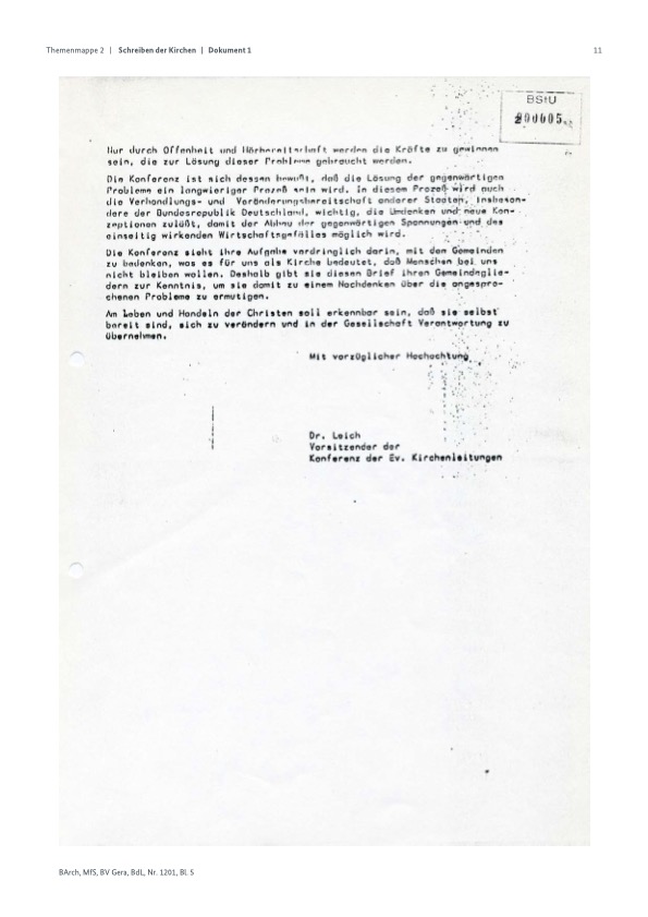 Werner Leich als Vorsitzender der Konferenz der Kirchenleitungen hat diesen Brief an Erich Honecker unterzeichnet.
